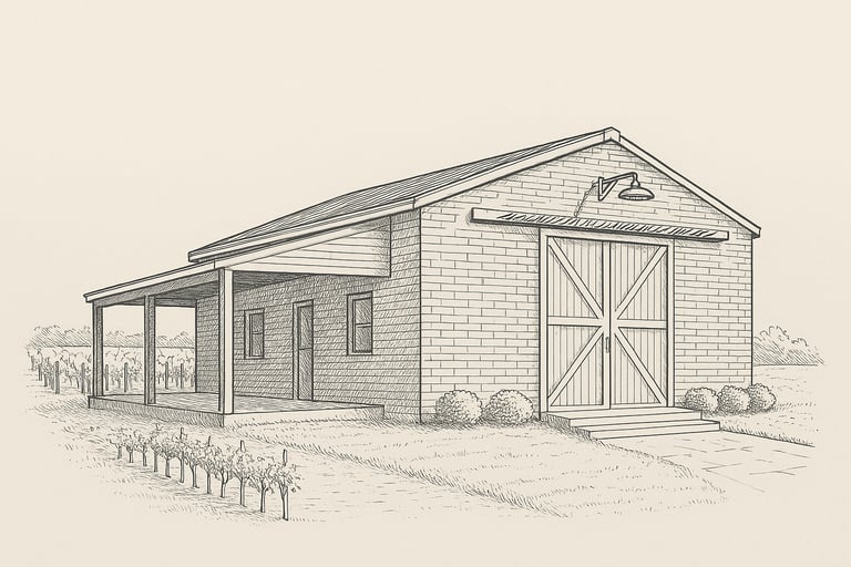 En el predio de Olivera avanza la construcción de la futura bodega Campo Basso, un espacio concebido para unir producción, identidad y paisaje. El proyecto combina un diseño moderno de líneas simples, con materiales nobles como ladrillo a la vista y madera, integrándose armónicamente al entorno del viñedo. La bodega contará con áreas de elaboración, guarda y una galería orientada hacia las hileras de vid, pensada para disfrutar del paisaje y la experiencia enológica en pleno corazón de Buenos Aires.